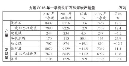 澳大利亚矿业巨头力拓集团于4月18日公布了2016年一季度产品产量和销量报告,数据显示一季度力拓铁矿石产量和发货量环比双双出现下滑,但同比依然增长。