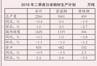 据日本经济产业省进行的调查,今年二季度日本钢铁企业计划生产粗钢2626万吨,同比和环比分别增长1.6%、1.9%;计划生产钢材2260万吨,同比下滑0.4%,但环比增长1.0%。日本经产省官员表示,预期的钢产量提升并非是对需求回升的响应,因为实际上日本钢材需求并没有恢复。“这种增长可能是一些钢厂因为在一季度停产而努力在二季度弥补产量,另外一些钢厂提高产量则是为未来的停产维修做准备。”该官员称。
