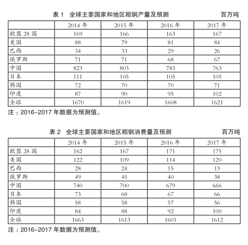 澳大利亚工业、创新与科学部在其日前发布的资源和能源展望报告中称,2016年全球粗钢产量预计将同比下降0.7%至16.08亿吨,2017年则同比增长0.8%,达到16.21亿吨。由于国内建筑业生产活动有所回升,2016年中国粗钢产量同比降速预计将比预期得更加缓和,但与此同时,今年欧盟、日本和韩国粗钢产量预计都将低于早先预期。