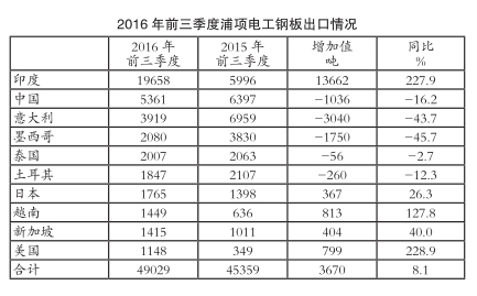 尽管今年7月中国对浦项钢铁公司电工钢板产品征收37.3%的反倾销税,由此影响浦项电工钢板对华出口,但浦项扩大对印度出口,目前印度已经成为浦项电工钢板最大出口市场。