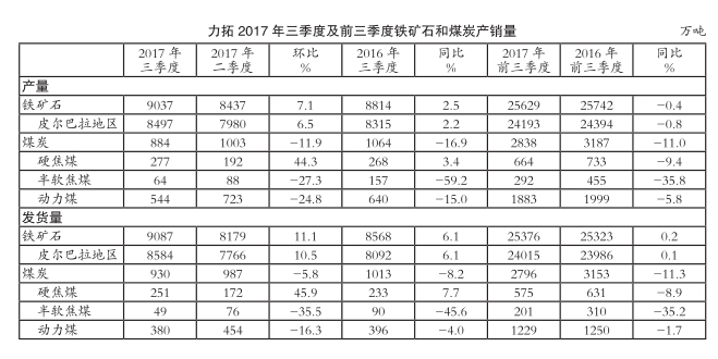 由于前三季度铁矿石产量和发货量同比保持基本稳定,力拓维持2017年铁矿石发货量目标3.3亿吨(按100%股权计)不变,实际发货量将取决于天气因素以及实际产能。