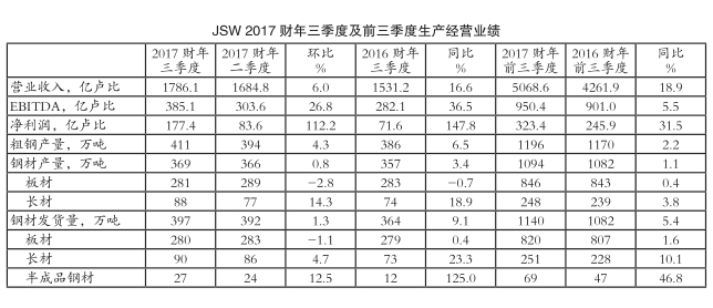 2017财年前三季度,JSW公司营业收入同比大幅增长18.9%至5068.6亿卢比;EBITDA同比增长5.5%至950.4亿卢比;净利润同比显著增长31.5%,增至323.4亿卢比。