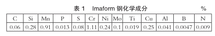 研究用钢采用连铸工艺生产,钢种牌号为Imaf orm(其化学成分见表1),它是专门为汽车工业而开发的,主要用于热锻,尤其是热成形。这种钢具有良好的力学性能、疲劳强度和切削性能。其中一个优势是热锻后不需要回火处理。室温下平均抗拉强度和夏比V型冲击韧性分别在950-1050MPa和60-100J。淬火后硬度(HV)为290-360。试验用Imaf orm钢为直径30mm的锻棒。